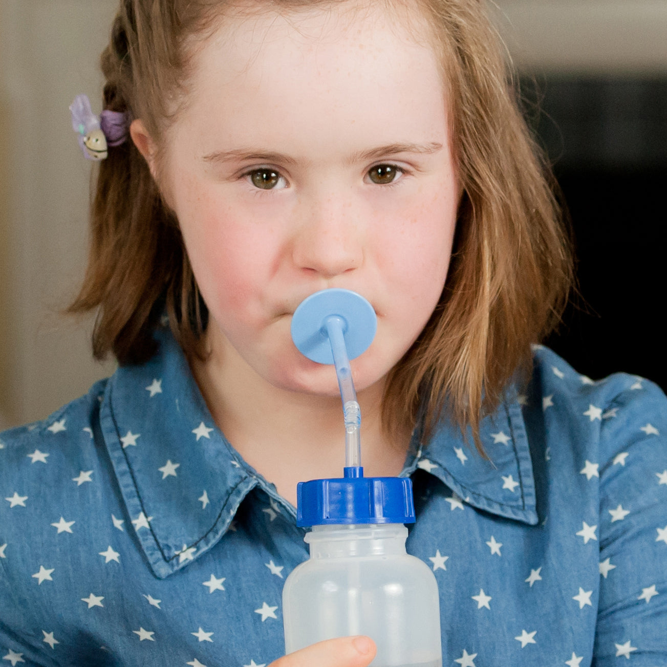 Það að drekka úr röri getur verið flókið verkefni þar sem það þarfnast samhæfingu vara, kinna, tungu og kjálka. Prófaðu að drekka úr röri og taka eftir því hvað munnurinn gerir. Varirnar ættu að vera með hálfgerðan stút og lokaðar í kringum rörið, tungan stíf og dregin til baka, og kinnarnar innsognar. Lip Blok munnstykkin eru einföld en áhrifarík til að æfa hreyfifærni munnsins. Einnig koma munnstykkin í veg fyrir að bitið sé í rörið eða rörið sett of langt upp í munninn.
