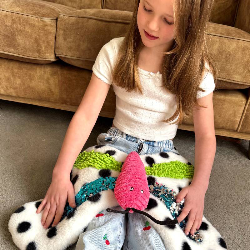 • Variety of tactile textures, including soft plush, ribbed fabric and sparkly details