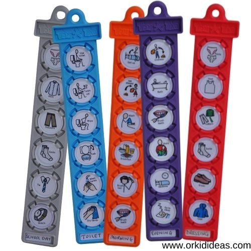 - Routines: Get up, get dressed (M/F), get undressed (M/F), pyjamas, bedtime, go to sleep, breakfast, tablets/medicine, story, watch, ear defenders, glasses