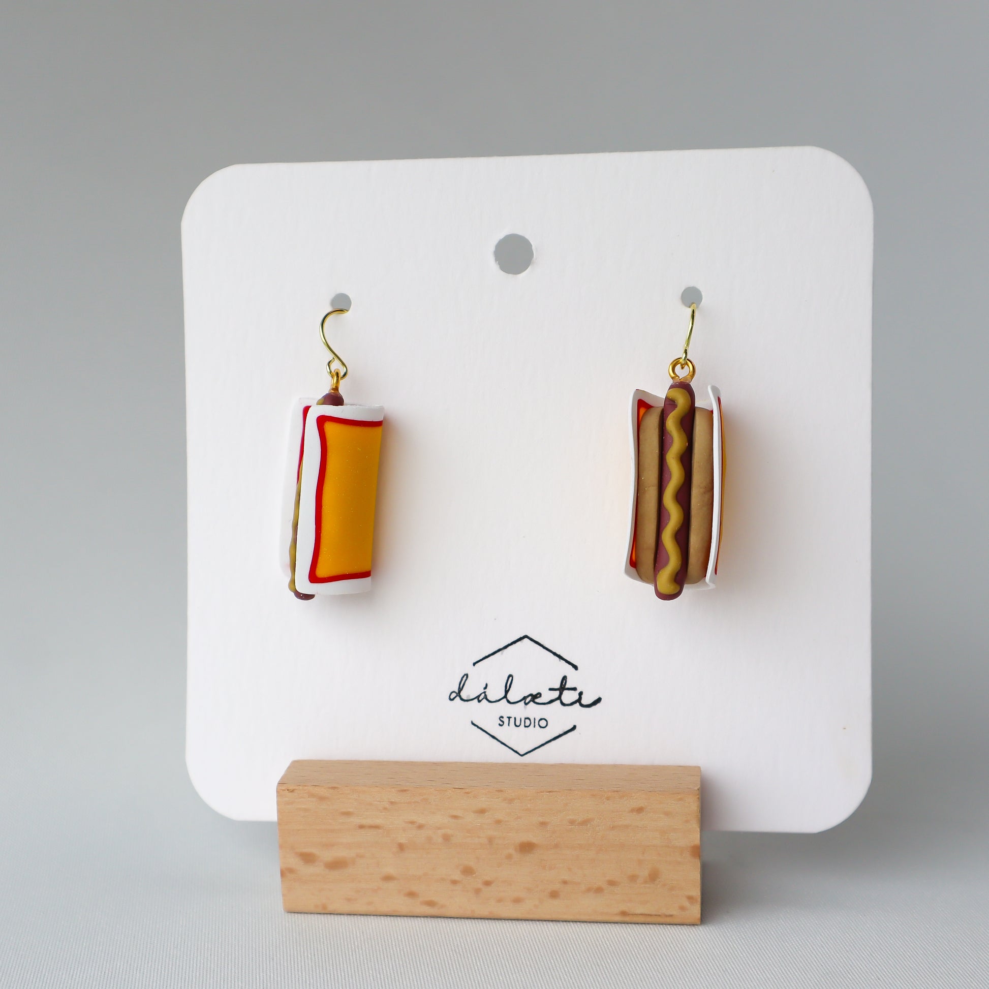 Pylsa á íslenskan máta fyrir þau sem elska pylsur! Pylsa úr leir með gylltum nickelfríum festingum.