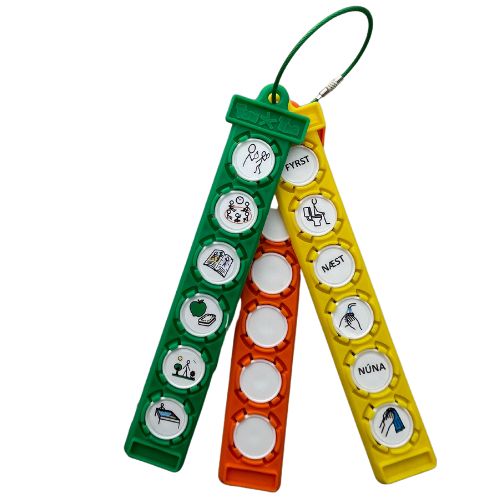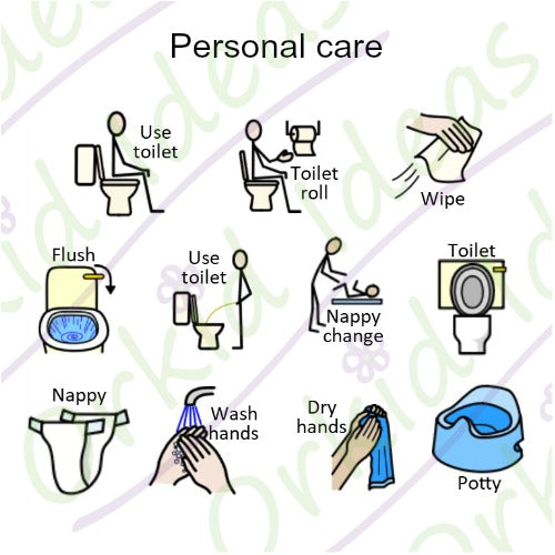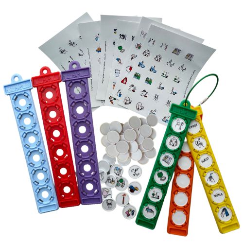 - Athafnir daglegs lífs límmiðapakki: Inniheldur 72 táknlímiða (x2 eintök) sem þú getur valið úr til að aðstoða við morgun- og svefnrútínur, að klæða sig og fatnað, athafnir á baðherbergi (tannburstun, klósettferðir, þvott, bað og sturtu) og almennt persónulegt hreinlæti.