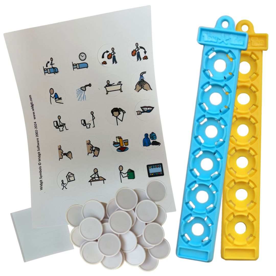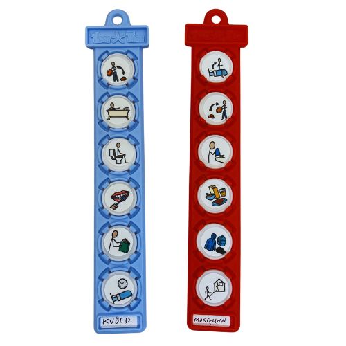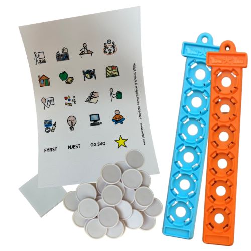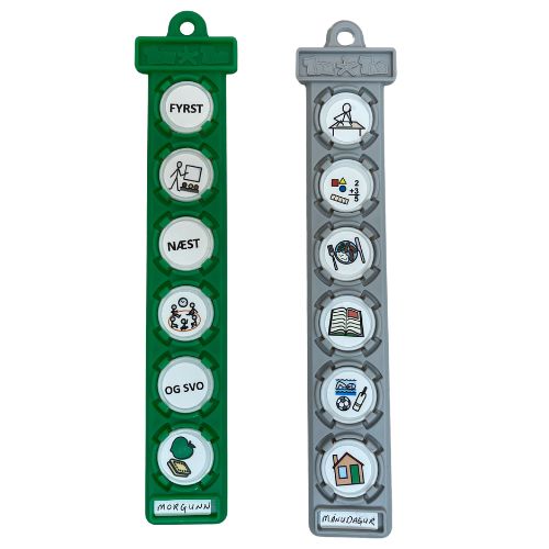 - 17 límmiða með myndum og 3 límmiða með orðunum: fyrst, næst og svo