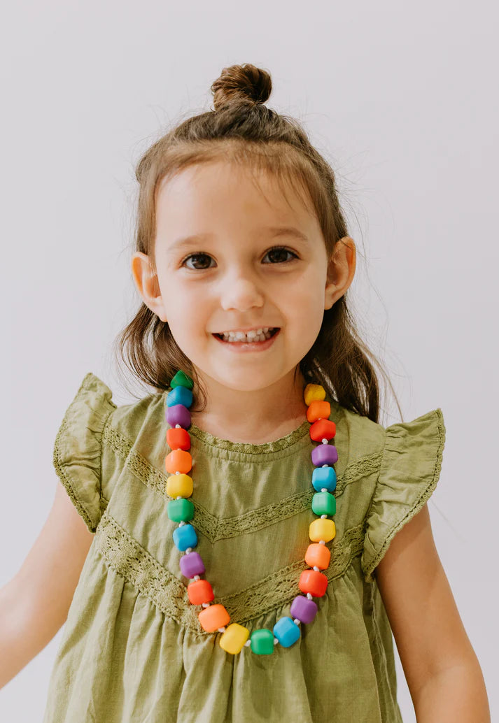 Segðu bless við nagaðar neglur, reimar og blýanta með sílíkonnaghálsmeni frá Jellystone Design. Regnboga naghálsmenið gerir barninu kleift að hafa alltaf skynjunarleikfang við höndina til að knýja fram slökun, takast á við kvíða og ná fram stjórn á taugakerfinu. Hálsmenin eru svo búin öryggissmellu sem opnast sjálfkrafa ef togað er í þau.