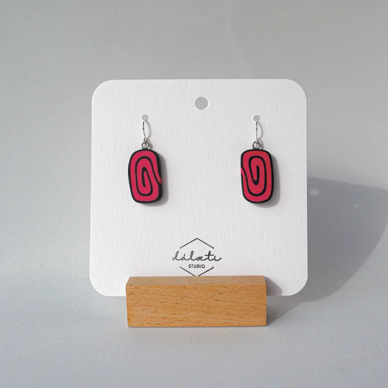 Bleik lakkrísrúlla úr leir. Festingar eru úr gullhúðuðu brassi.