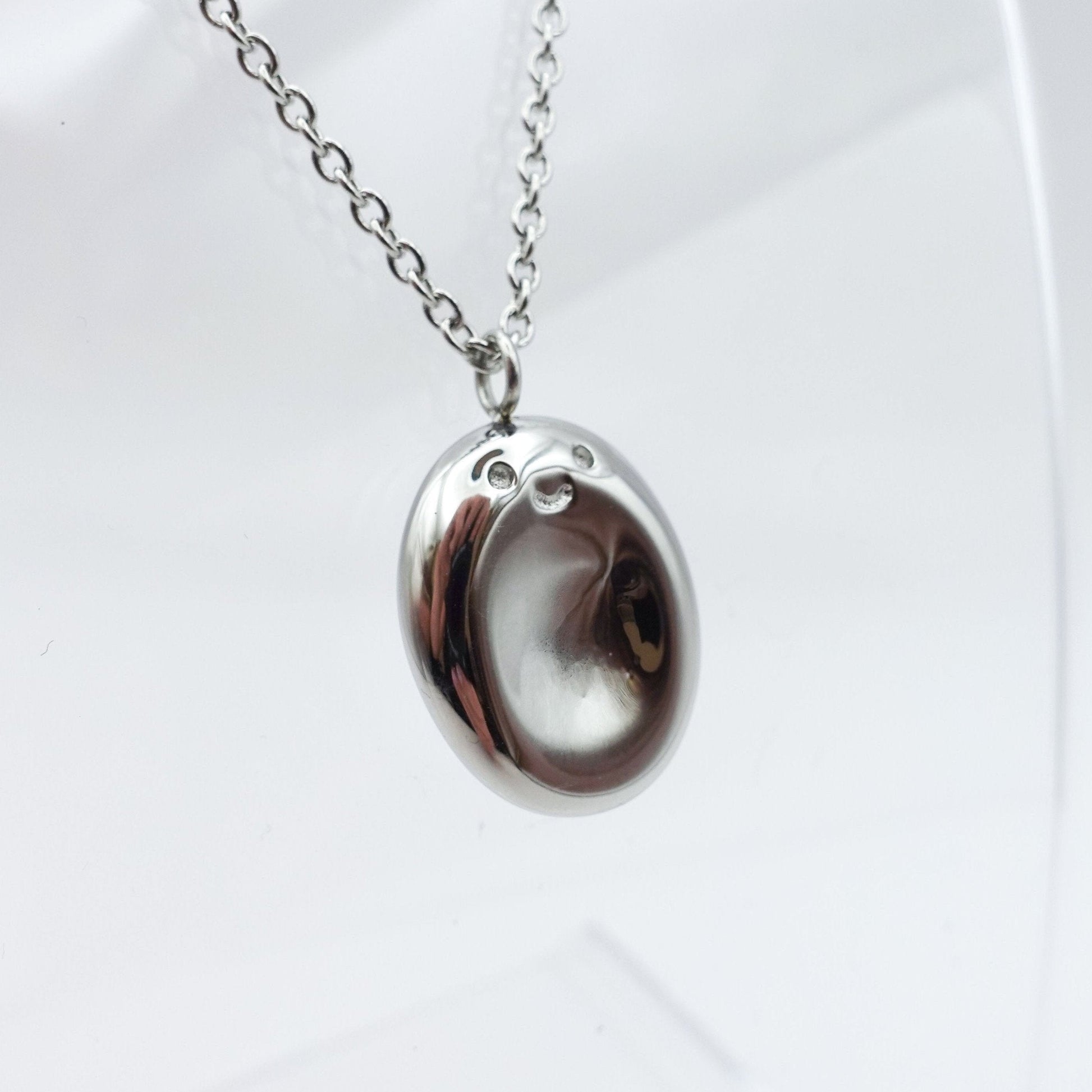 Worry Stone Necklace to bring comfort on the go. I designed this necklace with a dip in the middle, you can rub it with your thumb to help you relax. It also has an adorable little joyful face.